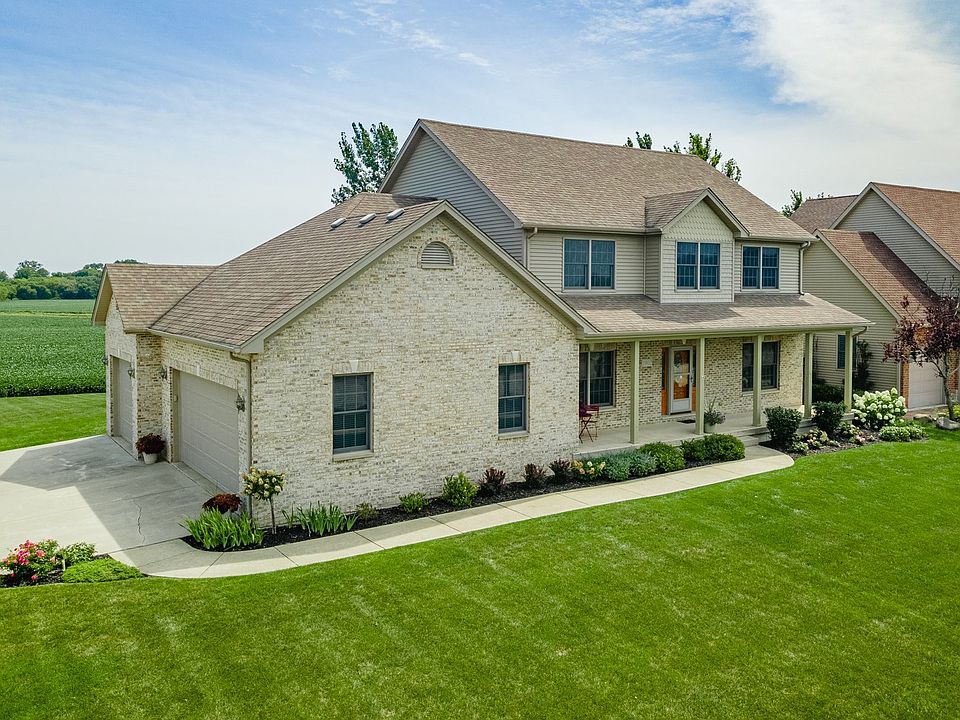 This beautiful & immaculate custom home is nestled on a cul-de-sac corner .39-acre lot offering a breathtaking countryside setting in the prestigious Krpan's Parkside Estate community! Maintenance-free deck, abundant landscaping, brick walkway & grill pad & panoramic farmland views create an amazing backyard retreat for entertaining & playing... enjoy outdoor living at its finest! Inviting 38'x6' covered front porch allows you to relax with your morning cup of coffee. Etched glass oval front door & side lights welcome you into the foyer area with guest closet. French doors open into elegant dining room showcasing illuminated arched China hutch niches & eye-catching crystal-like chandelier. 2nd set of French doors lead you to the 1st level home office. A chef's delight kitchen presents gorgeous soft white-based quartz countertops, complimentary subway tile backsplash, glass front cabinetry, dovetail drawers, undermount illuminating lighting, recessed lighting, stainless steel appliances & walk-in pantry. More French doors welcome you into the 4-season sun-filled Sunroom, newly added in 2013, featuring 14 windows with woven wood shades & 2 game closets. This favorite gathering area opens onto the spacious deck with spectacular country views! Living Room boasts 2 transom windows. Hunter Douglas window coverings, custom window treatments, professionally painted interior in 2019, solid paneled interior doors, oak flooring & whole house surround sound with built-in speaker system create a lovely feel-good home atmosphere! Ring security system, Ring door bell, Ecobee Smart Thermostat & Andersen wood windows add energy efficiency & safety to this custom built 2-story property. The pretty pedestal sink compliments the powder room. First level laundry includes washer & dryer. Custom oak staircase invites you to the upper loft area offering a pocket office, recreation area (currently hosts a shuffle board!) or reading/library nook... you decide! Primary bedroom suite showcases vaulted ceiling, Roman window shades, 8'x8' walk-in closet, tile surround separate shower with seat, corner shelving & glass door, corner whirlpool tub & 9' vanity with double sinks, all contributing to a spa-like experience. Every bedroom presents walk-in closets & ceiling-light fans. Oversized 3-car side load garage with 18'x8' & 10'x8' doors comes equipped with storage cabinets, bench, organizational accessories, epoxy floor coating & was newly painted in 2020. Concrete driveway & underground gutter system too! "Deep pour" basement features rough-in plumbing for a future bath, 93% Goodman energy efficient furnace, 75-gallon power vented hot water heater, Aprilaire humidifier, water softener, copper plumbing, 200-amp electric service & egress window! A+ location provides views of farmland, with nearby bike/walking paths, parks, Sycamore Park District Community Center & 18-hole golf course... embrace this opportunity to make 1902 Parkside Dr. in Sycamore your own home & "love where you live!"