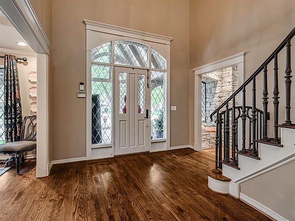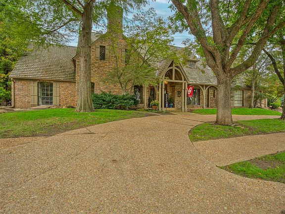 Timeless Tudor Revival in Whispering Pines just steps from OU’s campus. This 5-bedroom, 3.1-bath home offers over 4,600 sq. ft. of beautifully crafted living space on a corner lot. Grand ceilings and walls of windows fill the home with natural light, while rich wood details and a wine cellar add warmth and charm. The gourmet kitchen boasts custom cabinetry, premium stainless appliances, and a built-in pizza oven (a favorite) — perfect for entertaining. Retreat to the luxurious primary suite with a spa-inspired bath featuring a clawfoot tub, walk-in shower, and generous closet. Upstairs, a Jack-and-Jill bath connects two bedrooms, plus a hidden bunk room offers extra space for guests or play along with a second living room with a beautiful stone fireplace and a wet bar. Enjoy outdoor living around the private pool surrounded by mature trees. A true blend of old-world character and modern comfort in the heart of Norman.