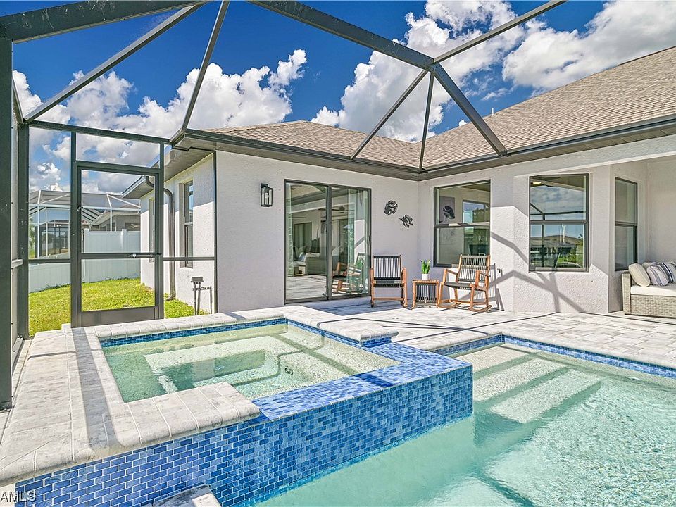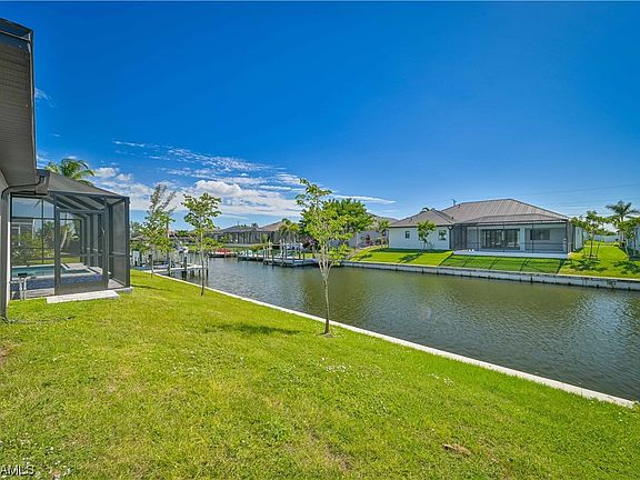 NEW CONSTRUCTION- 2023. Move in today,----- Seller to credit buyer $15k towards rate buy-down. TURNKEY FURNISHED! SW GULF ACCESS HOUSE with a POOL & SPA. SOUTHERN EXPOSURE brings in tons of natural light and sun on the pool most of the day. The home is loaded with amazing upgrades: A beautiful Quartz kitchen with a large work island, wood cabinets with staggered uppers, custom backsplash, Samsung stainless steel appliances, upgraded lighting fixtures, a paver driveway, and a HUGE pool area. OVERSIZED 29-foot deep 3-car tandem garage. The owner's suite is massive in size and features sliders to the pool area, views of the canal, ample closets, and a huge Grand bathroom with a soaking tub, walk-through shower, and dual vanities! Two main living areas make this home unique and great for entertaining! Enjoy the large under-truss lanai with views of the pool and water, or take a soak in the integrated spa! City Water & Sewer Assessments are paid in full!---- Turnkey / Furnished -