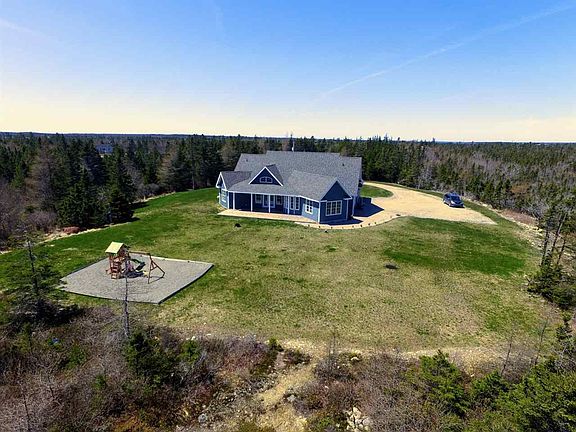 FOR SALE! Custom built 5 year old home in a great private location on Cape Sable Island. The lot is 14 acres and most of it is well treed, the home is set back from the road over 500 ft. and is very private, the cleared portion around the home, approximately 1.2 acres is grass covered and is large enough for a large workshop or storage building. The home itself has a maintenance free exterior, at the back of the house is a covered porch area that has a stamped concrete patio and is great for entertaining. The interior of the home is open concept with a large living room with cathedral ceilings that has garden access, as well as second family room area that could be used as a formal dining area. The large custom kitchen has beautiful cabinets as well granite counter-tops. There is a large island that has bar seating, off the kitchen is a dining nook that faces East for morning sun. The master bedroom is at the North end of the house and is a separate self contained suite with a large walk in closet and a five piece en-suite bath that features a large glass shower and a water jet tub. at the South end of the house are the other two large bedrooms as well as a 4 pc bath. Off the kitchen is a corridor with clever pantry storage as well as a large laundry room and access to the heated finished garage. Upstairs is a large L shaped space that is waiting to be used as a media/rec room or could be converted into more bedrooms. The heating system is a heat pump that heats hot water for the in floor heat, this is a very efficient way of heating the home. Call today for a viewing, 24 hrs notice for showings .