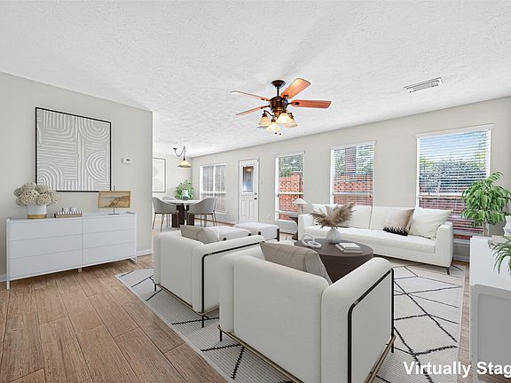 Great location in a quiet and gated community! Featuring two story, 2 car garage, 4 beds, 2 1/2 baths with almost 1900 square feet of living space. This home is well maintained and ready for immediate move in. Living room has plenty of natural lighting, kitchen is open to the dining area. Also has a breakfast bar add some stools and take a seat enjoy the family conversations over a nice meal. No carpet in the house. Large primary bedroom up with high ceiling. Primary bathroom has a separate shower with a soaking tub, double sinks and walking closet. Recent updates: Roof is 3 years old, AC - 4 years old, upstair flooring 3 years. Fresh paint throughout. Easy access to I-45 and shopping centers. Schedule your appointment today.