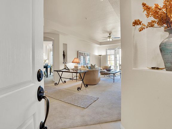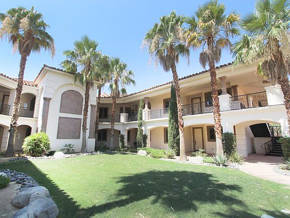 Gorgeous Cortona 2 plan. This 2 bedroom 2 bathroom with an office condo has been very well kept. Downstairs unit with an extremely private patio and wonderful South Eastern Views. Travertine floors with carpet, custom paint throughout, solid core doors and high ceilings. Master suite has patio access with very private and open exposure. The master bath has a large soaking tub with a separate shower, double vanities and a private water closet. The great room set up is very open with a fireplace and access to a spacious patio. The office / den has a wet bar and built in cabinets and could be used as another guest room if needed. The Clubhouse is close by with a pool and spa, movie theater, gym, boccie ball and shuffle board, a bistro and formal dining, a game room, Putting Course and much more. Villa Portofino is a 55 and better community that is quite possibly the best location in the valley. Eisenhower Medical, McCallum Theater, Grocery shopping and the Shops on El Paseo are all just a few miles away. Great for a vacation home or a full time residence. Call today to schedule a tour of this beautiful condo.