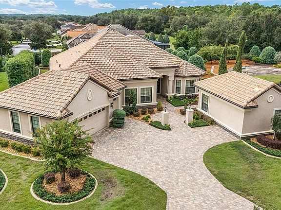Welcome to this stunning 3,100 sq ft home in the exclusive gated community of Bellamy Ridge located within the desirable golf resort neighborhood of Terra Vista Hernando, Florida. This impressive three bedroom, three-and-a half bath home with a casita sits on a private cul-de-sac that offers an exceptional blend of luxury and comfort. From the moment you arrive, you’ll notice the beautifully paved driveway, Spanish tiled roof, and custom stone exterior that creates outstanding curb appeal. The home features elegant architectural design perfect for both indoor and outdoor living with the main home, the casita, and the heated pool powered by solar electric energy for efficient living. Step inside the grand foyer with its striking floor-to-ceiling mirrored wall and take in the view of the spacious great room. Large exterior pocket sliding glass doors lead to the screened-in lanai where you’ll find a gorgeous pool with a rolling waterfall feature-perfect for relaxation and entertaining. Utilize the remote powered awning for additional shade. The home includes two primary-bedroom suites, each with luxurious bathrooms and walk-in custom California closets. A separate study or office space offers wood flooring and French doors, providing a quiet workspace. The property also includes a charming casita that’s ideal for guests or additional living space. The gourmet kitchen impresses with extensive deluxe cabinetry, granite countertops, stainless steel appliances, and a reverse osmosis and water softening system. Throughout the home you will appreciate premium upgrades including: 15ft tray ceilings with artistic finishes, crown molding, tile floors, plantation shutters, and a security system. Additional garage features include two large vehicle and golf cart spots, tile flooring, a workbench, large storage cabinets, and generator hook-up. The numerous other thoughtful details that make this property special are its lush landscaping and unique wall murals. Don’t miss the opportunity to own a magnificent pool home with casita in one of the area’s most sought-after communities. Terra Vista’s amenities include a social club, multiple golf courses, fitness centers, indoor/outdoor heated pools, a spa, restaurants and a tiki bar. For more information on Terra Vista go to: https://citrushills.com/community/community-terra-vista-gated/