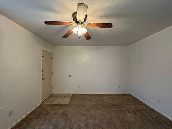2-bedroom 1-bath quadplex unit with carpet throughout and a spacious living room. Features include ceiling fans, all white appliances, and a dishwasher for added convenience. Come by our office to see this property today.
