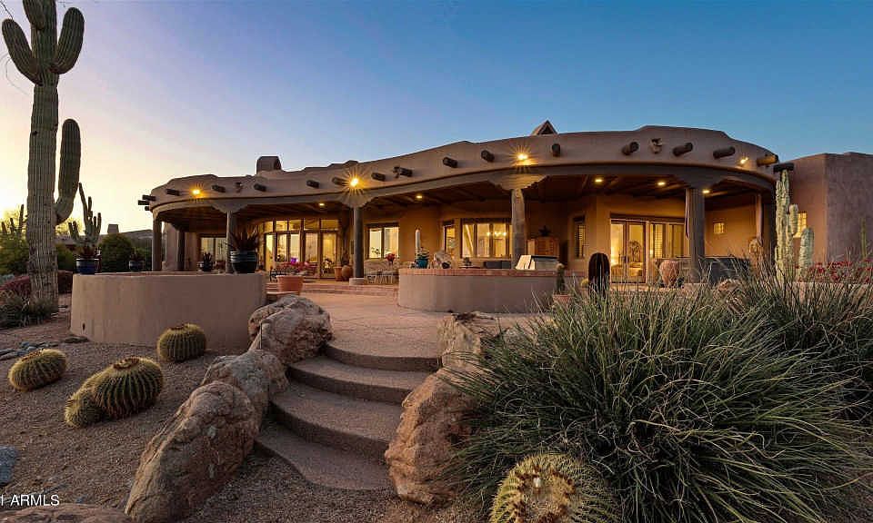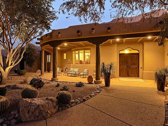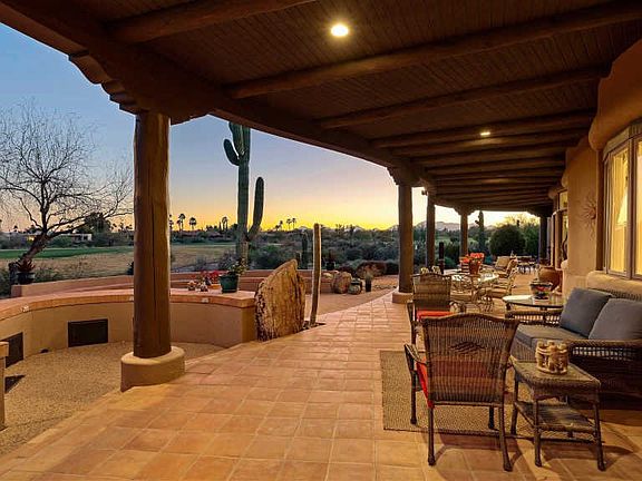 Luxury Southwestern Hacienda on a double lot on golf course with mountain views in Tonto Verde! This 5150 SF home has 4 Beds, 4.5 Baths, a private office, and a 33,350 SF lot that rears to the 17th hole of the Ranch Course. Carved double doors open into the sprawling great room with formal dining area, built-in wet bar with wine refrigerator, fireplace, and ceiling timber details. Remodeled kitchen and master bedroom, breakfast room with Kiva style fireplace, arched and curved custom 8 ft Alder doors and cabinets throughout. Guest suites have full baths and walk-in closets. Huge tiered patio with a BBQ island bar, rooftop viewing deck, and new above ground spa. Tonto Verde has 2 golf courses, an 18-hole putting course, clubhouse, fitness center, and heated salt water pool & spa.