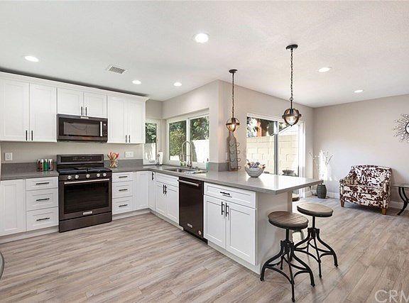 Call us direct for a private showing. Michele/Fred 562-235-6700 562-688-8666 Gorgeous remodeled Cerritos home - End of Cul De Sac, Upstairs & Downstairs Master Bedrooms. This stunning remodel was just completed & features 2 master bedrooms, with an upstairs amazing en suite - HUGE, HUGE, HUGE - 2 rooms & could be used as master and media room. Large master bath has beautiful marble shower tile, custom glass enclosure, 8 function panel, free standing soaking tub, & dual sinks. Downstairs master bath has large porcelain tiled shower, rainshower head, dual sinks, marble vanity top. The striking kitchen features new white wood shaker cabinets with soft close door & drawers, new grey quartz counters, new high end black stainless steel Kitchen Aid appliances - convection range & microwave. Truly a chef's dream. New A/C, New FAU, New Water Heater, New Flooring, New Dual Pane Milgard Windows, ETC ETC ETC. Way too much to note. Large Double Door Front Entry, direct access garage, Fireplace, New recessed lighting and lighting fixtures throughout the home and newly landscaped. *TOO MUCH NEW TO LIST ALL*. This is a must-see, end of cul de sac, drop dead gorgeous remodeled home.