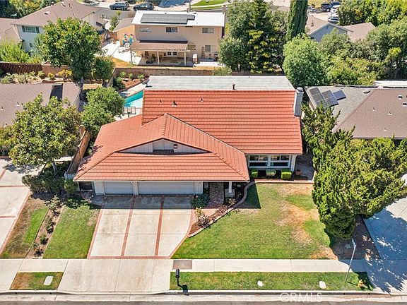 Stunning Porter Ranch pool home. Tucked in the middle of the block, this rare gem has been lovingly cared for and has such pride of ownership. Award winning schools, in fact you can walk to Beckford! Great curb appeal, brick accents, lots of greenery, 3 car garage and well maintained landscaping. Spacious living room has a wall of windows, center fireplace, adjacent formal dining room and large eating area in the kitchen can double as a family room. This versatile layout has a downstairs bedroom and 3/4 bath. Perfect for an office, parents or downstairs bedroom. Dual paned windows and french doors allow abundant light in this cheerful layout. Kitchen has lots of counter space, large pantry and overlooks the sparking safety fenced pool and dramatic open wood beamed patio, all this and still a good sized grassy area to enjoy and entertain. Lots of sideyard too! Upstairs are three additional bedrooms, the oversized primary bedroom has a wall of closets and ensuite bathroom. The primary bedroom is so large it can accommodate extra large furniture! The other 2 bedrooms are nice sized also. This is a rare opportunity to own this caliber of home with all the amenities. Walk to the new Porter Ranch shopping centers, seasonal Farmers Market, Hiking and easy access to the 118 freeway.