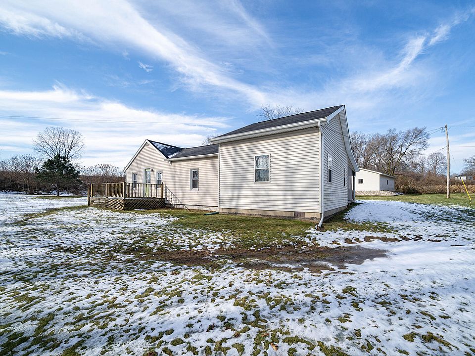 Well kept 3 bed 1 bath home nestled in to it's half acre lot with two garages, a single car and a three car garage. This is a dream for the person that likes to have work space or for that someone with toys to store. Inside, everything is on one floor. Attached is a large deck that is covered so weather does not hinder your outdoor dining or quiet time. Located close to town and just off I-94, everything you might want is convenient without having to pay city taxes. Schedule your showing today.