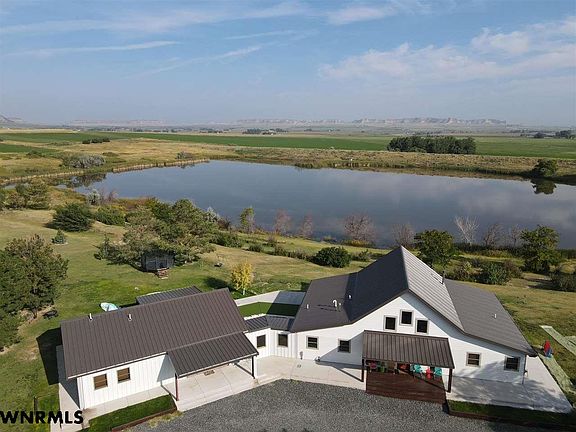 This acreage lies south of Scottsbluff/Gering NE in the Western Panhandle of Nebr. North of Cheyenne/Ft Collins CO. Located on the north west side of the Wildcat Hills. Beautiful airport for easy travel connects to DIA. Built in 2016 and an addition in 2020. This home meets every families dream. 5 BR 5 Ba & large open great rooms in LR & FR. Views are phenomenal all directions. Located beside an approximately a 15 acre pond. Property includes ownership in the pond. Great fishing. Lots of vegetation and trees. Lots of wildlife. Hunting close by. 30' X 33' BUILDING with 3 doors for parking. Large beautiful trimmed out windows & vaulted ceilings enhance the large living areas with natural light. Beautiful wood burning stove with great surround. All plank flooring. Kitchen is large Cabinets with glass doors. Large gas stovetop. Large island with seating. Ample counter space. Great room allows for a large dining room table as well. Great for entertaining or just feeding the family. Built in beverage refrigerator and trash compact drawer. DOUBLE LAUNDRY Beautiful usable lockers line the hallway to the ADDITION. Awesome & very functional FR with small kitchen area and large living area. Additional 2 Br 2 Ba and extra laundry facility. 10' AWNING. & patio. 2 covered Decks ( One is 12') plus 10' AND 5' cement path way entirely circles the house & Addition. Large cemented patio area on lake side has new hot tub and golf putting surface. Firepit areas by the Pond & Cement pad & large sand pit. NEW PAINT. DOCKING AREA for boats, jet skis, etc. LOTS MORE TO SEE AND ENJOY ON THIS ACREAGE.