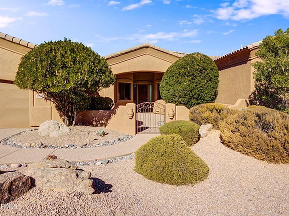 Quiet setting in the gated golf community of Tonto Verde. Large lot backs up to a wash with Mountain views. 3 Bedrooms, 2.5 Baths, Great Room, Den/Office/4th BR. 2 Dining areas, Open Kitchen. Granite Counters, Bar seating, Kitchen Island, Pantry, Dbl Ovens, Microwave. Split floorplan for the Bedrooms. Alderwood Cabinets, 8ft Interior Doors. AC units updated, wrap around covered patio with large windows for the views. Large Utility Room with sink and ample storage. 3 Car garage with over height doors, epoxy floor, storage cabinets and extended length. Gas fireplace in Living room, 12ft ceilings, tile & carpet flooring. Back yard with flagstone Firepit area and fenced in dog run. New Pickleball courts and dog park.