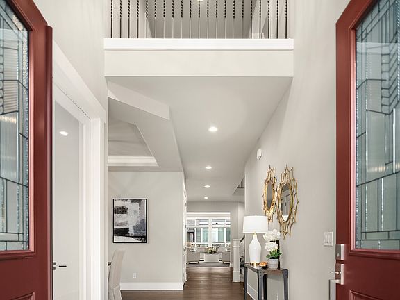 Luxurious and spacious, high ceilings, wide spaces and a dramatic curved staircase welcome you into this 5-bedroom 3.75 bath home. Windows everywhere for an abundance of light. Stylish, open kitchen features white Quartz counters, butler pantry and a 6-burner gas range for the aspiring chef, gather around the huge center island or the family room gas fireplace for cozy fall evenings in. Main floor bedroom and 3/4 bath an ideal guest suite. Splendid primary suite with vaulted ceilings, walk-in closet and 5-piece bath with a free-standing soaking tub. Convenient upstairs laundry. Lots of "work from home" spaces. Covered patio, fenced backyard. The park across the street is the community gathering place. Trails, lakes and multiple parks nearby