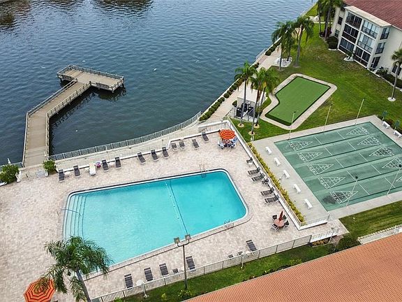 Come see this charming villa located within the waterfront amenity rich community of Imperial Cove. Here you can have it all, everything is included. Heated pool, activities, social director, property manager, ballroom, fitness rooms, sauna, putting green, shuffleboard and so much more. Even cable and internet is included. Villa 10D is located close to "the loop" which is an amazing waterfront sidewalk with sweeping views that winds around the bay and the canal. Dolphins, manatees, and birds of all kinds are ever present. Kitchen offers solid surface counter top and recessed ceiling all appliances included. Primary bedroom and living room have sliders leading onto the Florida room offering additional living space year-round. Inside, you’ll find ample storage throughout, and the absence of carpet means low maintenance with vinyl and tile floors throughout. A convenient laundry room is located within the unit, adding to the home's functionality. Guest bedroom is located on the front side with guest bathroom beautifully updated, primary bedroom is in the rear with primary bathroom and huge walk in closet. Functional floor plan lends itself so well here for easy living and a carefree lifestyle filled with as many things as you like to keep busy.