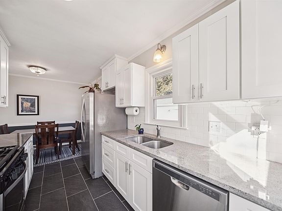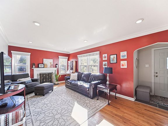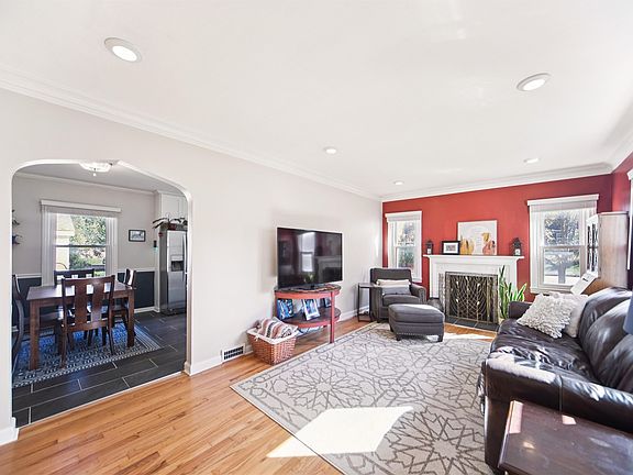 Step inside to discover timeless details like refinished hardwood floors, original built-ins, glass door knobs, arched doorways, and a cozy wood-burning fireplace. The fully updated kitchen features shaker-style cabinets with soft-close drawers, granite countertops, subway tile backsplash, and stainless steel appliances—a perfect mix of style and function.
