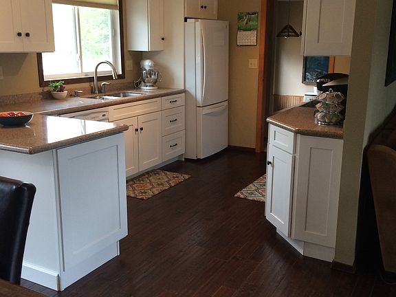 This home has so many wonderful details and updates to mention. Must see! The kitchen was completely remodeled in 2012 with new maple cabinets, silestone counters and new appliances. Hand-scraped hickory flooring throughout. The bathroom was remodeled in 2015 and has a granite vanity and marble hexagon floor tile. The downstairs is complete with a large updated family room and office. Two finished rooms is the basement could easily be converted into legal bedrooms with egress windows or use them as a craft or excercise room. There is an attached one stall garage and a detached back garage which is heated and insulated. Flower beds, raised garden beds a parking pad for the camper AND newly resurfaced blacktop driveway are all added to this already meticulously maintained and ready to move-in home. To top it off, this package is nestled in a cozy quiet neighborhood on a dead-end street. Don't miss out on this gem!