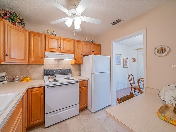 This sweet condo has a pretty remodeled kitchen with wood cabinets, tile backsplash and tile floor. Most of the furniture is negotiable as well. Neutral colored carpet in the living and dining room and an updated vanity in one bathroom. The enclosed, air conditioned lanai overlooks a green space between two other buildings and is such a lovely place to sit at all times fo the day to enjoy the pretty view. The utility room in the rear has a stacked, space saving washer and dryer so there's much more room for storage. The gated community of Kings Point has amazing facilities, pools, and clubs just waiting for you to enjoy. Located between Sarasota and Tampa, the perfect location for a convenient ride to airports, great shopping, dining, professional sports and entertainment. With easy access to award-winning, sand beaches, this is the best of all worlds, but without the stress of big city life. Leave it all behind and enjoy your new life here in one of the country's highest rated 55+ communities!