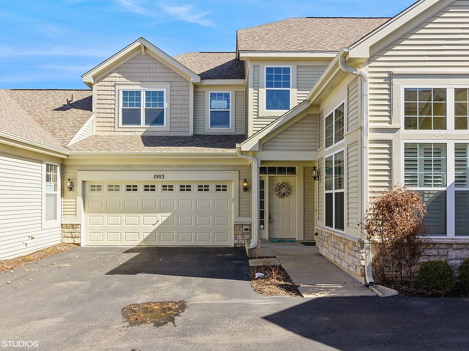 Welcome to the most stunning of all properties in Stonegate West. 1903 Chase Ln is a two-bedroom, two-bathroom property that is full of updates to satisfy even the most selective buyer. Walk up the entryway stairs into the open floorplan with vaulted ceilings and take in the beautiful porcelain tile flooring that spans the dining room, kitchen area, hallway and laundry room. The kitchen has updated granite counters and backsplash that complement the 42" maple cabinets. New carpet was added in the family room. The entire home was freshly painted in neutral colors and there are windows galore, letting in natural light. The master includes a sitting room - or call it a workout room - which is how the current owner uses it. The ensuite bathroom and master closet is where it's at! A fully updated bathroom includes a Moen digital smart shower feature. Google it - you'll be amazed! The walk-in master closet is designed with a top of the line, customizable organizing system from the Container Store. You will actually find the same system in the second bedroom closet as well, which is also a walk-in. The next perk in both bedrooms, as well as the office, are the plantation shutters recently installed. The south facing balcony is the perfect spot to catch some rays any time of day. It is also maintained by the HOA so no worries on its upkeep - it is taken care of. Enjoy maintenance free living with lawn care and snow removal included in your fees, as well as use of the community pool and clubhouse. Quick access to I-88 and shopping nearby at the outlet mall. So much to love here.