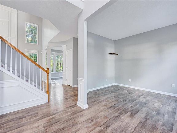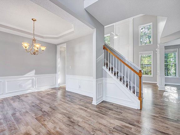 ''WOW—what a find in Walden Creek!'' Step inside this light-filled, feel-good home where every space invites you to breathe a little deeper and smile a little wider. The two-story foyer and family room create an instant ''wow'' moment, with sunlight pouring through walls of windows and bouncing off beautiful LVP floors that flow throughout most of the main level. To your right—your ideal home office; to your left—a dining room ready for gatherings and good memories. Keep walking, and the open family room welcomes you with a cozy gas fireplace and views that flow seamlessly into the kitchen, featuring stainless appliances, granite counters, and plenty of room for cooking or catching up. Step through to the bright sunroom—your bonus office, art space, or zen den—and then out to the massive deck overlooking a private, peaceful backyard that backs to trees (your morning coffee will thank you). Upstairs, the spacious primary suite offers a vaulted ceiling, large walk-in closet, and a spa-style bath with soaking tub and separate shower. Two additional bedrooms and upstairs laundry make life convenient and easy. Plus—brand new carpet and fresh LVP in the upstairs baths mean move-in ready comfort! Walden Creek is one of those rare communities where people really know each other. The neighborhood pool and swim team are buzzing all summer, and the sidewalks are made for friendly waves, furry companions, and evening strolls. Welcome home—this one feels special.