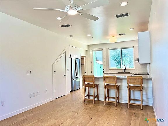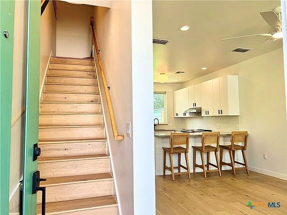 You're invited to discover Lively Lane, a thoughtfully crafted pocket neighborhood located in the heart of San Marcos, Texas. This community offers modern, high quality townhome style units with an emphasis on sustainability and connection. This particular unit, the Clever Townhome floorpan, provides an efficient two-story layout, perfect for individuals, couples, or small families. With an open living and kitchen space on the first floor and all bedrooms upstairs, this floor plan maximizes both privacy and functionality. Additional features include: vaulted ceilings, a private second floor balcony, in-unit washer and dryer, stainless steel appliances, and solid surface counters & flooring throughout. Outside, enjoy a private fenced patio, storage shed, and garden. All this and you can walk to many local coffee shops, restaurants, bars, parks, and everything else the vibrant and growing city of San Marcos has to offer.