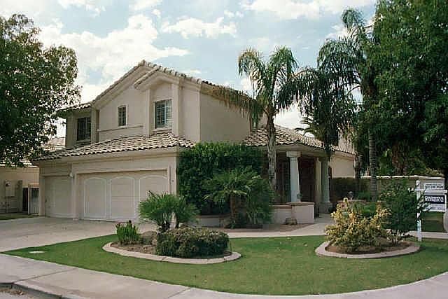 Impressive family home in excellent condition. Lowest price in subdivision. Beautiful large private lot in quiet gated area. 5 bedrooms or 4 and den. Ceiling fans throughout, bayed windows in living room, kitchen and master bedroom. Security system and reverse osmosis. Wonderful Val Vista Lakes amenities...includes beautiful large clubhouse and kitchens, sandy beach pool, jr olympic-size pool, spa, raquetball, tennis, exercise room, volleyball in beautiful waterfront setting