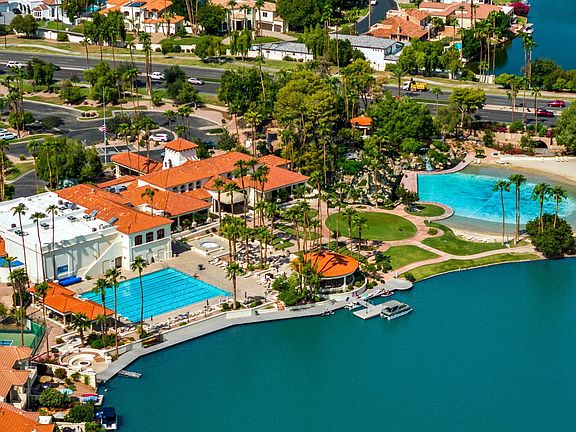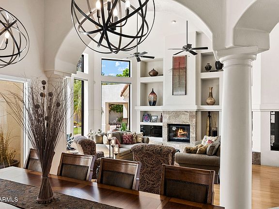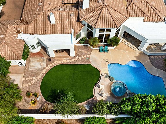 Welcome to your DREAM HOME in the highly sought-after Val Vista Lakes community! This stunning 4-bedroom, 2.5-bath residence sits on an extra-large private cul-de-sac lot with no neighbors behind you and direct access to a scenic walking path. Step inside to soaring vaulted ceilings, a chef's kitchen with a huge island, rich dark cabinetry, newer appliances, pull-out drawers, and abundant storage. The spacious layout flows beautifully into the backyard oasis featuring new turf, a sparkling heated pool, natural gas, and a built-in BBQ—perfect for entertaining! The pull-through garage is a rare gem, offering access to both the front and back yards. A seperate 2.5 car garage offers loads of storage, a tool bench and windows for natural light. Retreat to the luxurious master suite with a dual-sided gas fireplace that warms both the bedroom and the spa-like bathroom, complete with his-and-hers closets, an oversized shower, and a soaking tub. With a newer AC, gorgeous finishes, and incredible community amenities, this Val Vista Lakes beauty has it all!