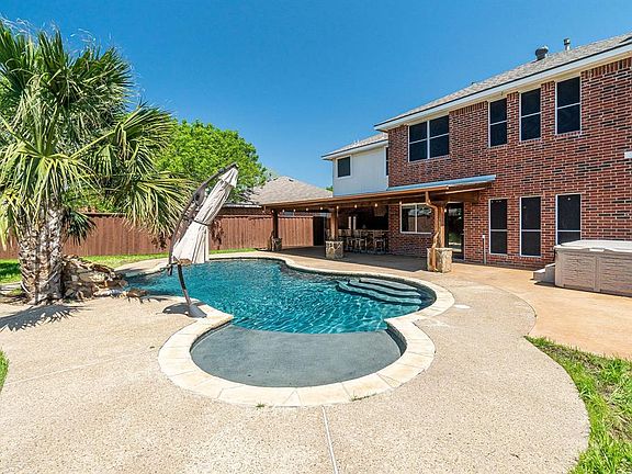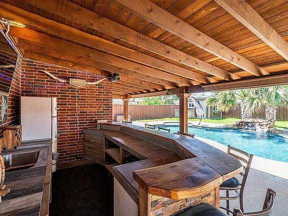 Live in an oasis. The yard is big with a sparkling clean saltwater pool. You will feel like you are on vacation every time you are out there, seated at the super cool outdoor Western-style bar in the shade. There are several places to sit and to lay out in the sun, and yet still enough yard space for a dog or two and places to play. The storage building is included too for your lawnmower and pool equipment and your toys. That leaves room to park both of your cars in the garage. There is a shower in the utility room to clean up before you enter the house. The master bedroom is upstairs. The whole family can unwind in the gameroom together or you can enjoy tons of space downstairs along with a private office