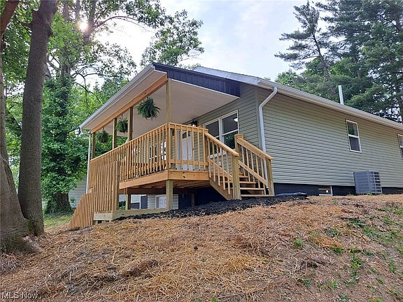 JUST LIKE A BRAND-NEW HOME! This 4 bedroom, 1 bath home has everything new from porch/decking, siding, roof, windows, driveway on the exterior to all new doors, flooring, paint, lighting, hot water tank, furnace/AC, Pex waterlines, kitchen cabinets, countertops, and bathroom in the interior! The "L-shaped" living room is brightly lit with plenty of windows to watch the leaves change color in the fall. The kitchen with recessed lighting is large enough for many cooks and a dining room table. The 4 bedrooms are split with 2 on each side of the house with the bathroom between 2 bedrooms. Enjoy your morning coffee on the awesome, covered front porch or have a cookout on the back deck off the kitchen. There's a full, walkout basement with a washer/dryer hookup, is somewhat plumbed for another bathroom, and could have a garage in the basement level or one built on the back of the property. Plenty of off-street parking. Don't miss the opportunity to own this modern, remodeled home at