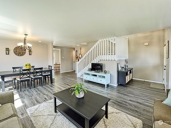 Welcome to this lovely home in a friendly, happy Lynden neighborhood! Two-story house with primary bedroom on main level and two bedrooms upstairs, 2.5 bathrooms: en-suite full bathroom on the main floor as well as a half bath, and another full bathroom upstairs, spacious living/dining area, front yard and backyard, beautiful landscaping, room for gardening. Brand new roof this year. Central heat and a/c as well as a cozy and efficient gas stove in the corner of the living room. Lots of natural light, close to the Jim Kaemingk Sr. walking trail and Bender Fields, peek-a-boo view of Mount Baker from upstairs. Come see it today! So affordable for all that it offers!