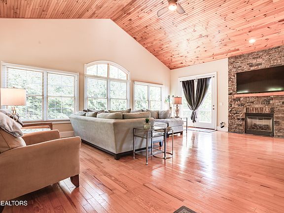 different view point of all the nature around this home. Bald eagles are often seen here! The garage is a two car that's heated and air conditioned. There is a stair lift from the top level to the second for anyone who's challenged by stairs, you can enjoy this home without worry. All furnishings and appliances convey. Close to two full service marinas. Community swimming pool, clubhouse, fitness room and a boat launch. Desirable location 30 minutes north of Knoxville, an hour from Gatlinburg/Pigeon Forge. Short term rentals allowed.You Tube google address