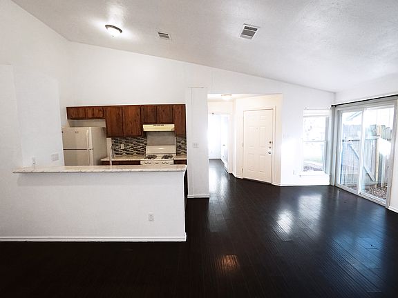 Spacious and welcoming, this 2-bedroom, 2-bathroom home with a detached 1-car garage offers both comfort and convenience in one of Austin's most desirable locations. Step inside to an open-concept layout where the kitchen, dining, and living areas flow seamlessly perfect for entertaining. Beautiful hardwood floors run throughout, adding warmth and style. The primary suite features generous closet space and a separate vanity area in the bathroom, while the guest bedroom is located on the opposite side of the home for added privacy. The fully fenced backyard provides a great outdoor space for relaxing or gatherings. Enjoy unbeatable walkability to The Domain, Walnut Creek Park, ACC, Kramer train station, Austin FC's Q2 Stadium, and local breweries along Metric Blvd.