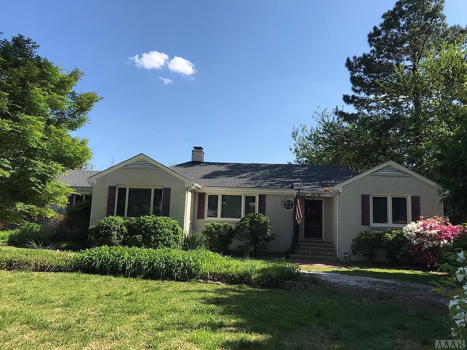 Stunning azaleas in front yard, tons of room in this all one level house with addition of master suite. Hardwood floors, fireplace in LR; kitchen and DR , office, 2car garage and sunroom . Lots of room and lots of privacy inside and out. Back yard has pergola & new 2 level decking Slate pathway from house to decks. Remodeled kitchen, baths and master suite! Only carpet in house is in the master suite. Skylight in master bath, walk-in closet with built-ins and wonderful walk-in shower! Upgrade laminate in kitchen, tile in all 3 baths. Garage is plenty large for 2 full sized cars plus storage.