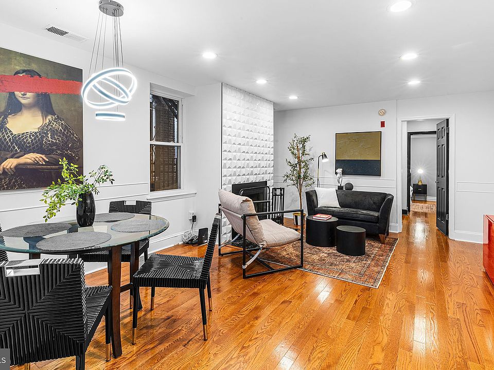 Experience the epitome of Philadelphia living at 1903 Spruce Street, a historic Rittenhouse Square treasure. Built in 1900, this impeccably updated condo seamlessly blends timeless charm with modern sophistication. Just steps from the Square on picturesque Spruce Street, the property’s stately brick façade sets an elegant tone. Once inside the cozy nature of the unit is immediately felt in the open living space by the real hardwood floors, custom millwork, recessed lighting, and a working wood-burning fireplace with modern tile surround. The stylish and functional kitchen was recently remodeled with stainless steel appliances, soft close cabinetry and quartz countertops. In the rear of the unit is the generous bedroom with hardwood floors, closet dressing area and a separate bath adorned with luxury Kohler fixtures, custom vanity and dramatic designer tile. In-unit washer/dryer, private storage space and low condo fees round off this perfect home! Located one block from Rittenhouse Square and steps from the city’s finest dining, shopping, and entertainment, 1903 Spruce Street is a rare find. Schedule your showing today and make this timeless home your own. Low Condo Fees!