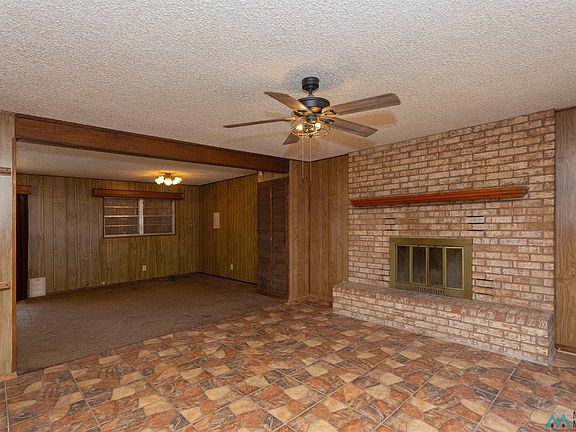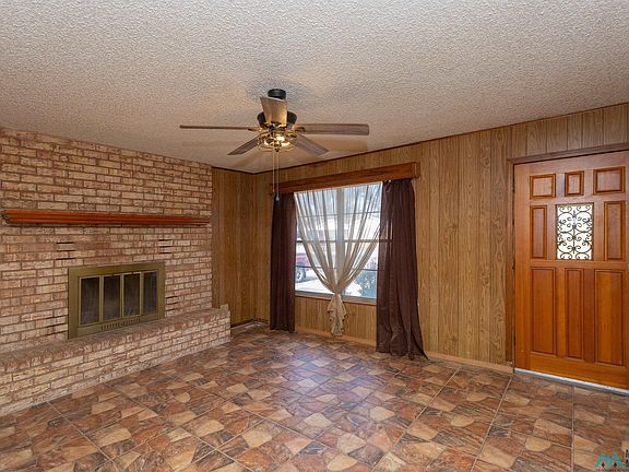 This home offers 1,355 sq ft. of comfortable living space with three bedrooms and two bathrooms- the layout provides flexibility for a variety of needs. A charming brick wood-burning fireplace anchors the living room, creating a cozy atmosphere. The property offers abundant storage both indoors and outdoors, including a shop/garage with alley access and two additional backyard storage structures. Enjoy the covered back patio with ceiling fans- perfect for relaxing or entertaining. The front of the home includes two driveways, providing ample parking space.
