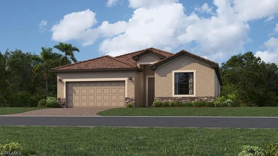 Located in desirable Estero, FL, Verdana Village is a master-planned community of new homes for sale that feature all of life’s necessities. Designed for lavish living and a thriving social atmosphere, Verdana Village boasts a plethora of unique indoor and outdoor luxuries, including a restaurant, sports complex and more! This single- story home offers versatile living, with an open design among the dining room, kitchen and family room, which lead to a covered lanai for outdoor experiences. Surrounding the space are all four bedrooms, including the lavish owner’s suite with an adjoining bathroom and a large walk-in closet. A versatile two-car garage completes the home. Prices and features may vary and are subject to change. Photos are for illustrative purposes only. Estimated delivery date is Dec 2025/Jan 2026.