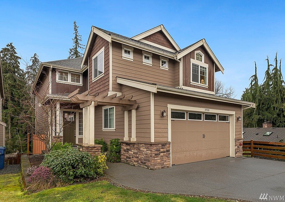 Absolutely Gorgeous! Light and bright move in ready Bothell Home with coveted Everett schools. This 3500 SF home has a wonderful floor plan with all the right spaces working and learning from home. The open great room features elegant beams and abundant windows for natural light. Cook in the spacious chef's kitchen w/ slab granite, S/S Appliances, abundant cabinets & oversized island perfect for entertaining. Enjoy the majestic sunrises from the expansive private deck. Upstairs find 4 beds including a large owner's suite with 5 pc bath and a private outlook. Basement features high ceilings, a large bedroom, bonus room, full bath and a flex space perfect for home gym, second office or convert to extra bedroom. EZ Commute! Hurry!