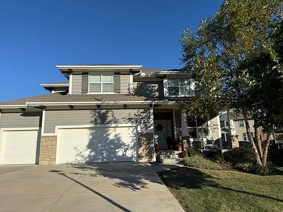 Tucked away in a quiet cul-de-sac, this home is the perfect blend of comfort and elegance. It features five spacious bedrooms and 4.5 bathrooms, ensuring plenty of room for everyone. The great room is warm and welcoming, complete with custom built-ins, plantation shutters and a cozy gas fireplace—an ideal spot for relaxing. Need a home office? You’ll love the one here, with French doors and even more custom built-ins. The kitchen is a dream, with a huge walk-in pantry, durable wood floors and an expanded island. You'll also find a big mudroom with tons of storage to keep everything organized. The primary suite is your private getaway, offering a deck with stunning Kansas sunset views. The bathroom boasts a luxurious walk-in shower, dual shower heads, and a jacuzzi tub. Plus, each bedroom has its own walk-in closet, giving you all the storage you need. The finished basement offers more space for entertainment or relaxation, perfect for game nights or movie marathons another bedroom and full bath. Outside, the large, private backyard is perfect for hosting BBQs or just hanging out, complete with a sprinkler system to keep everything green. The three-car garage comes with a spacious built-in workbench for all your projects. With modern touches and included appliances, this home is ready for you to move in and enjoy before the Holidays!
