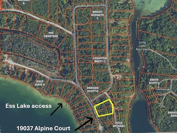 Enjoy new carpet in this three bed home. Lovely, large living room with vaulted ceilings, wood-burning fireplace (could easily be converted to natural-gas) and an expansive deck (40x8). Upper level consists of living room, three bedrooms and full bathroom. Lower level offers a large kitchen with cupboards galore. Dining room also has additional built-in storage. Laundry and half bath are located off the kitchen. One car garage attached to home offers space for the ng furnace and water heater. This is an excellent area for storage. Walk across the street to 1 of 3 shared access points on Ess Lake for swimming, kayaking, etc. or go down the road further to the Long Lake access for tennis/pickleball, horseshoes, swimming or to just sit on the dock. EssLake.com has additional details.