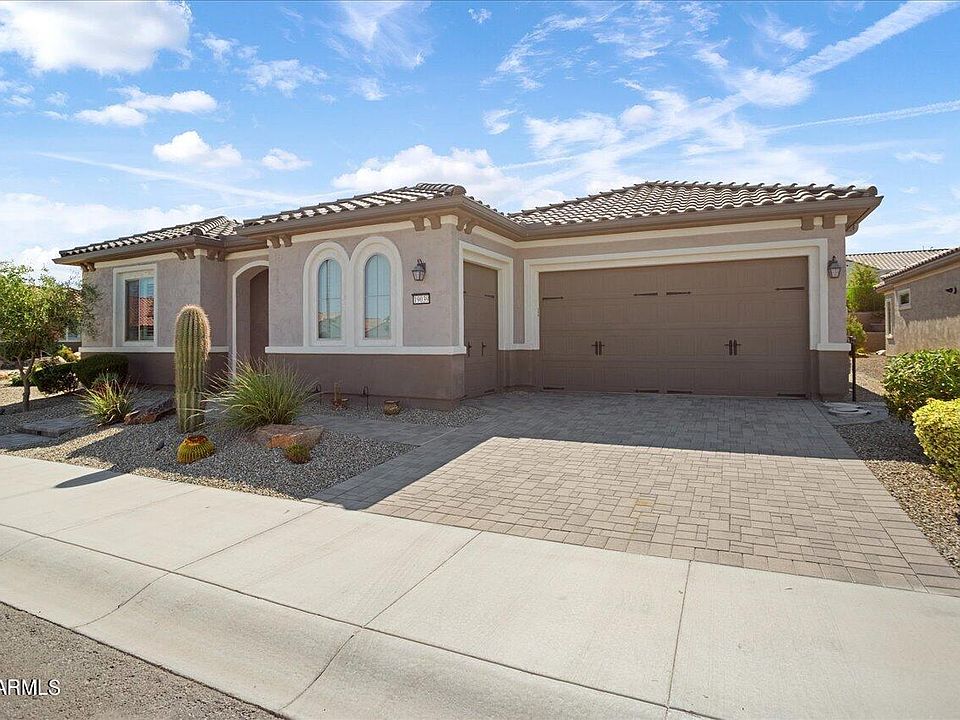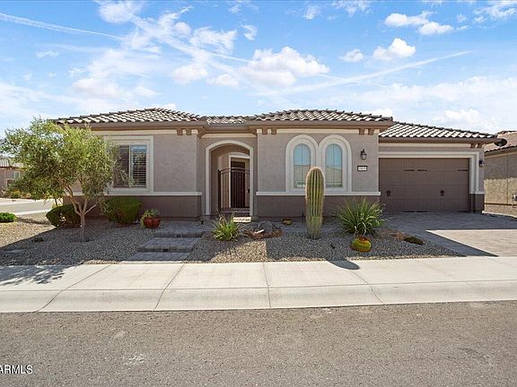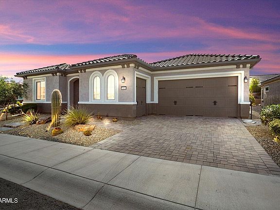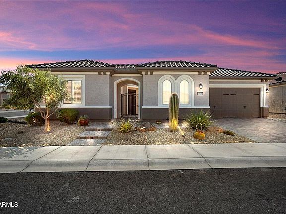 Very lightly lived in, this stunning Voyage model is truly your own personal oasis. Set on a large corner lot with view fencing, it features an inviting security screen entry, a custom media wall with fireplace, great room surround sound, and timeless plantation shutters. The kitchen shines with quartz countertops, a designer island, and stylish café touches. Outdoors, an extended travertine patio with firepit creates the perfect setting for sunsets and starlit evenings. With rain gutters, ceiling fans, and a spacious 2.5-car garage with cabinets, this home offers elegance, comfort, and the best of desert living.