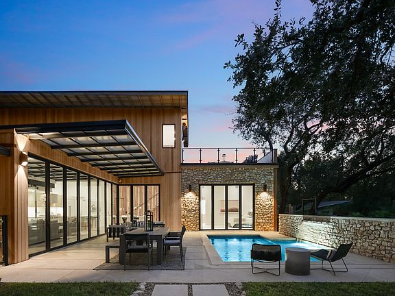 Welcome to 1904 Arthur Lane, a Mid-Century Modern Masterpiece nestled in Austin's Barton Hills. This extraordinary home embodies the city's architectural spirit, designed by the renowned mid-century architect, Arthur Dallas (A.D.) Stenger. Stenger was not just an architect but a trailblazer, crafting over 100 unique homes that celebrated eccentric individualism in a once-quiet college town. Stenger's designs are a fusion of nature and modernism, characterized by signature elements such as wood, stone, vast windows, and 50s-style fireplaces. These homes prioritize natural light and ventilation, pioneering sustainable living in their time. 1904 Arthur Lane is an original J.D. Stenger masterpiece that captivates with its bold architecture and unique charm. As you enter, you'll immediately notice the glass wall of doors that completely open up to the outside, seamlessly merging indoor and outdoor living. The interior is flooded with abundant natural light, creating a sense of harmony with the lush surroundings. The gorgeous chef's kitchen is a culinary enthusiast's dream, featuring top-of-the-line appliances, modern fixtures, and ample counter space for culinary creativity. Lavish entertaining spaces flow effortlessly from room to room, providing the perfect setting for gatherings and celebrations. The spacious primary retreat offers a tranquil oasis overlooking the inviting swimming pool. Wake up to the soothing sound of water and the beauty of the outdoors. The ensuite bathroom is a spa-like haven, offering a luxurious escape from the everyday. Outside, the property boasts gracious outdoor living spaces, and a stunning pool perfect for al fresco dining and relaxation. You'll also find a custom designed exterior dry sauna, adding an element of luxury and wellness to your daily life. The current owner has impeccably preserved the home's rich history while seamlessly infusing it with contemporary elements, creating a captivating fusion of past and present. Situated in Barton Hills, one of Austin's most sought-after neighborhoods, this home offers a harmonious blend of lush greenery and urban proximity. Just a stone's throw from downtown, Barton Hills showcases a diverse tapestry of architectural styles, embodying the true essence of Austin living. Owning 1904 Arthur Lane means owning a piece of Austin's rich architectural history and a unique connection to the city's past and present. This property seamlessly combines the best of mid-century design with modern amenities, offering a one-of-a-kind living experience that celebrates both nature and luxury.