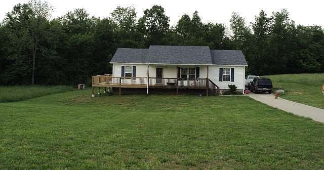 Country ranch approximately 14 miles from Elizabethtown. Split bedroom design with covered front porch, wrap-around deck. Kitchen/dining combo, walk-in closet in master bedroom, concrete driveway.