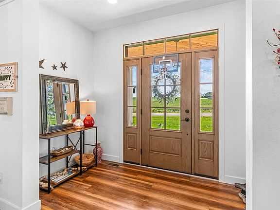 Welcome to this tranquil country escape, offering easy access to urban amenities. Views of the sunrise over the pool are breathtaking, whether from the opened french doors of the dining area, or the enclosed porch off the primary suite. Every space in this nearly 5,000 sq ft home, featuring 5 bedrooms and 4 bathrooms, is designed for comfortable living. Zero entry, main level living adds to the ease of the vast open concept. The private, primary bedroom showcases an ensuite with a soaking tub, grand tile shower, and impressive walk in closet. The lower level contains all you need for it's own living space:wet bar, theater room, two fantastically sized bedrooms, and a massive all-concrete multi purpose storm shelter. Step out to the backyard oasis with the salt water in-ground pool and entertainment area that is surrounded by a privacy fence, and also boasts another more than full size garage.