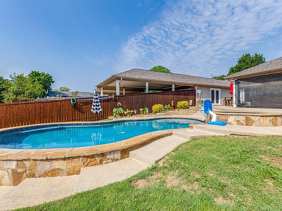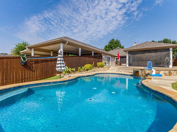 Back On The Market. No Fault of the Sellers. Beautiful, 1 story, move in ready home in Indian Trails of Mesquite. Marvel at the backyard oasis. On an expanded lot, enjoy your pool, spa, and covered outdoor living area. Your screened patio is perfect for this fall to watch football games while grilling. The pool or spa is the perfect place to unwind. Need extra space, there is a shed that conveys with the sale as well as extensive storage above the expanded carport. One can fit 4 cars under roof in the carport. You won't find another backyard like this in the area. Inside, stretch out across over 2,100 square feet. This light filled 3 bedroom, 2 bathroom set up has a primary bedroom with ensuite bath, separate tub and shower, as well as a walk in closet. Multiple living spaces include a large, finished garage that can be your family, exercise, or media room. The sun room is the perfect place to set up as an office. Use the formal dining room for those special meals or grab a quick bite in the breakfast room adjacent to the kitchen. Smith Elementary School is just a few short steps away. Copeland Park can be reached with a short walk. You are only minutes to major highways that can take you all across the DFW area. You get so much with this home, it is a great value. This house is a must see.