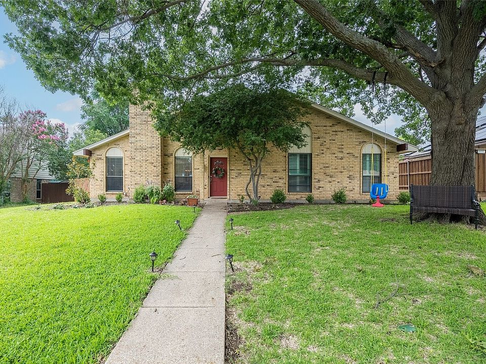 Cute, cute home with open layout and so much natural light in awesome Richardson location. You are immediately greeted with lovely tile flooring leading to a sunken living area with soaring ceilings and beautiful fireplace. Updated kitchen has abundant cabinetry, coffee bar with floating shelves and an island for serving or casual dining. Indulge your culinary talents with double ovens and gas cooktop. Spacious master bedroom with charming barn door separating bath and closet. Exterior is freshly painted. Fenced yard with storage building.