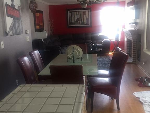 2 story home in a cul-de-sac neighborhood. With a little under 2,000 square feet, 4 bedrooms & 3 full bathrooms. Beautiful double entry doors leading to living room with high vaulted ceilings with laminate flooring. The entire home has recently been painted inside. DOWNSTAIRS: offers 1 bedroom with 1 full bathroom, laundry room, dining room/family room adjacent to the Kitchen with nice tiled counter top island, pantry closet, lots of cabinet space, high ceiling and glass sliding door leading to the entertainer's back yard with covered patio. 2 sided stairs which you can go upstairs through the family room or formal living room. UPSTAIRS: offers carpet throughout the 3 spacious bedrooms, Master suite has it's private full bathroom with double sink, 2 closets one with mirrored sliding doors & a large walk-in closet, sliding glass door leads to private balcony overseeing the backyard. Additional 2 bedrooms with great closet space in each, and 1 full hallway bathroom. 2 car garage with lots of storage space and direct entry to the home. Driveway with basketball hoop for family enjoyment. Close to freeway and shopping centers.