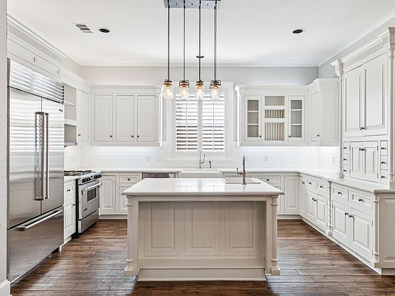 Ideally situated in Southlake and served by exemplary Carroll ISD schools, this gracious home blends classic warmth with beautifully updated modern living. Set on nearly half an acre, the property welcomes you with mature trees, lush landscaping, and a timeless brick façade that sets the tone for the inviting spaces inside. The heart of the home is the updated kitchen—thoughtfully refreshed with sleek finishes, commercial-grade appliances, and generous prep and storage areas designed for both everyday use and effortless entertaining. Adjacent living spaces offer soaring ceilings, abundant natural light, and views of the resort-style backyard, creating a seamless flow throughout the main level. The first-floor primary suite is a serene retreat with an updated spa-inspired bathroom featuring fresh finishes, a soaking tub, walk-in shower, and dual vanities. A private study, elegant dining areas, and a spacious living room complete the main level. Upstairs, discover four well-proportioned bedrooms, each with walk-in closets, along with a dedicated media room suited for a variety of uses. Outdoors, an expansive covered patio overlooks the sparkling pool and spa with waterfall, and a large grassy yard—ideal for recreation or relaxation. With a 3-car side-entry garage, multiple fireplaces, and thoughtful updates throughout, this property offers comfort, flexibility, and a premier Southlake location.