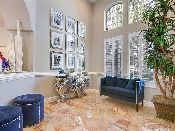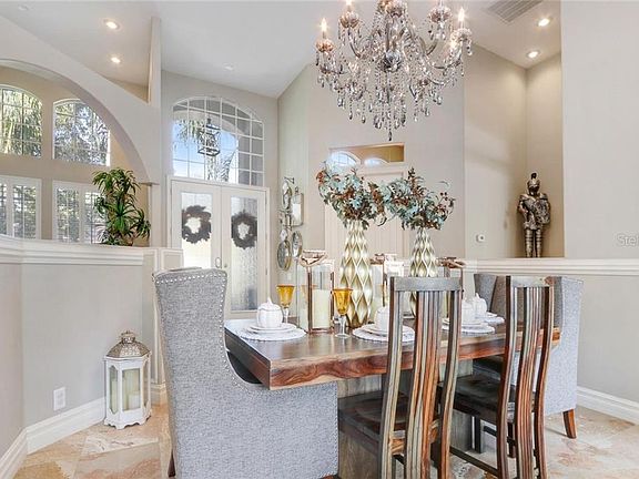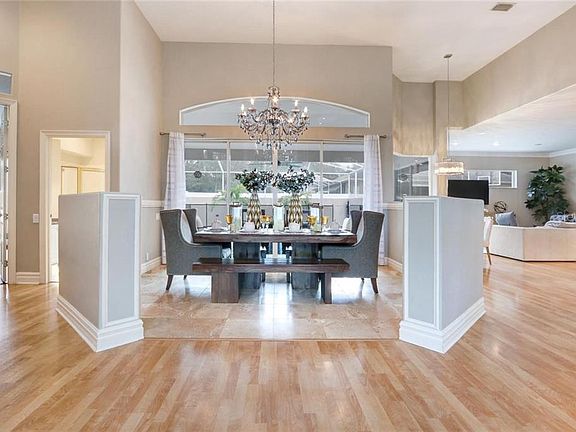 Come enjoy the quiet Curry Cove lifestyle at its finest in this tastefully updated pool home that sits on just over half an acre corner lot. Your breath is taken away as soon as you step through the front door and see all the high end finishes throughout this open concept floor plan with high ceilings. The kitchen was designed for any chef to easily fall in love with from the exotic quartzite countertops and backsplash to the custom cabinets with crown molding and ample storage space. The kitchen also boasts Samsung and Kitchen Aid stainless steel appliances, oversized breakfast bar, island with cooktop, and walk-in pantry. The kitchen overlooking the living room and family room is ideal for entertaining or keeping an eye on the little ones. The oversized family room with wood burning fireplace has endless possibilities from movie room to man cave to playroom. The expansive Master Suite located on the north end of the home offers bamboo floors, a walk-in closet to die for, and sliding doors that lead to the sparkling pool. The Master En Suit features quartzite countertops, his and her sinks on opposite walls, and LED mirrors. The rest of the home features the 2nd and 3rd bedrooms on the south end of the home with a jack and jill bathroom, 3rd bathroom/pool bath, laundry room with cabinetry and shelving, custom plantation shutters throughout, 2 car garage with plenty of storage, and roof replaced in 2018. The backyard oasis can be seen and is accessible from all the main living areas of the home. The secluded pool with water feature and covered patio are separated from the rest of the backyard by a half wall and screened in enclosure. The large backyard features turf, basketball court, and vinyl fence. No HOA or CDD. Don't miss the opportunity to make this dream home your reality. Call today for your 3D virtual tour.
