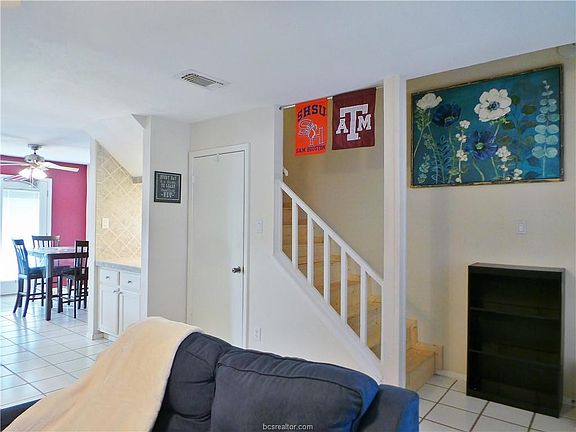 Great condo in the Heart of Aggieland... smaller, quaint complex close to everything with easy access to Highway 6! Walk to the TAMU bus stop or bike to campus... Close to H-E-B, tons of restaurants and shopping, Wolf Pen Creek Park and complex. Enjoy a cozy fireplace and private patio, all tile flooring downstairs and nice wood laminate in upstairs bedrooms. Master bedroom features a vaulted ceiling, en-suite bath and walk-in closet; second bedroom is large, too, with upstairs bath; convenient half-bath for company downstairs. Well cared-for condo -- not a rental! Easy to show... make your appointment today!
