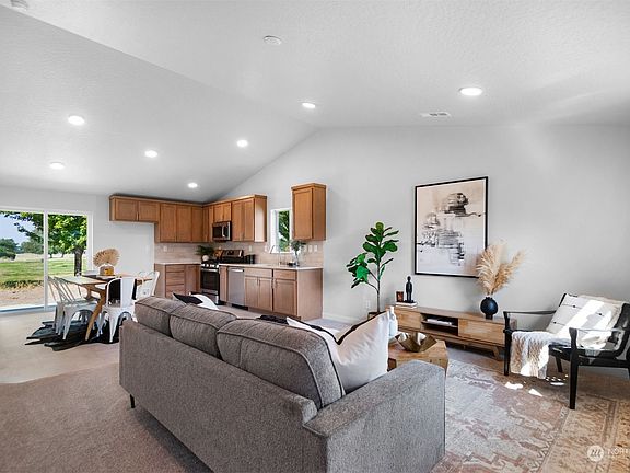 The 1148 square foot Alderwood has long been a favorite for those seeking both comfort and function in a modestly-sized single-level home. High vaulted ceilings add volume to the already expansive living room, overlooked by the open kitchen, and adjoining dining area. The generous main suite boasts its own private bathroom and substantial oversized closet. The additional two bedrooms are equally sizeable and share a second bathroom. A large laundry closet offers valuable storage space to this incredibly efficient home. Photos are of similar home