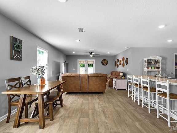 VA assumable with low interest rate! Nestled in a peaceful cul-de-sac, this beautiful 5-bedroom, 3-bath home offers the perfect blend of comfort, space, and functionality. Upon entry, you’ll discover a spacious open-concept kitchen featuring a large island with room for additional seating, stainless steel appliances, ample cabinetry, and a walk-in pantry, ideal for both everyday living and entertaining. The living room flows seamlessly to the back patio, creating the perfect indoor-outdoor connection for relaxing or hosting gatherings. A bedroom on the main floor provides flexibility for a guest room, home office, or playroom. Upstairs, you’ll find a versatile loft area, perfect for a media room, workout space, or additional lounge area. The primary suite offers a generous layout with plenty of room to unwind, while the large fenced backyard provides privacy and space to enjoy the outdoors. Located just 30 minutes from beautiful Pensacola Beach, this home combines suburban tranquility with easy access to coastal living, shopping, dining, and entertainment. Don’t miss your chance to make this stunning property your new home!