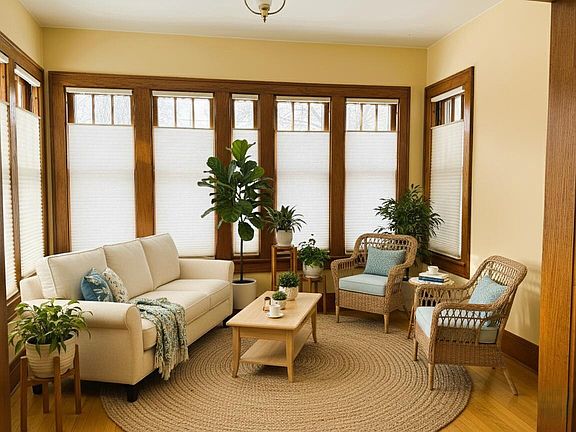 Classic BEAUTIFUL Tosa Lannon Stone Bungalow w/a Side Patio offers a WONDERFUL Open Floor Plan without compromising the Beautifully Maintained Old World Charm one expects in a Home of this Caliber. The SUN Rm/Office opens to the SPACIOUS Living Rm w/ Dramatic Stone NFP Flanked by Built in Bookcases w/ Leaded Glass Doors & Windows above. Living Rm flows into the GENEROUS Sunny Dining Rm featuring an Oak Window Bench w/Storage for easy living & entertaining. A Thoughtfully Remodeled Kitchen offers Lots of Storage too. A Full Bath & 2 BRs w/ WICs complete Main Level. NEWLY Carpeted (12-25) Stairs & Upper Level has another BR PLUS an Office/playrm & 1/2 BA AND Expandable Attic. Attached Garage is a Bonus. Period features include Oak Woodwork & Built ins, Hardwood Floors & Leaded Glass!