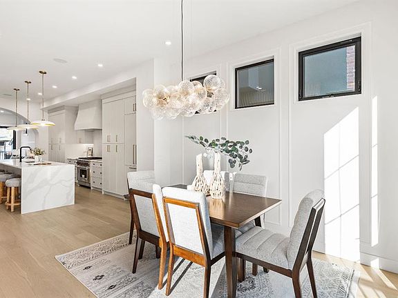 This extraordinary brick-exterior home is set in one of the most desirable locations and built by Jerry Homes with a thoughtfully designed, functional floor plan. A spacious foyer welcomes you into the main level with soaring 10-foot ceilings, a dining area accented with custom wood paneling, and a stunning kitchen featuring a massive 12-foot island, hidden walk-in pantry, high-end built-in Wolf and Dacor appliances, quartz countertops with under-cabinet lighting, and elegant gold accents. A beautifully crafted archway separates the kitchen from the great room, anchored by a custom multi-tier gas fireplace, while the mudroom provides ample storage. Large windows throughout the home fill every level with natural light, enhancing the open and airy design. Upstairs, 9-foot ceilings frame a lavish primary suite with two large walk-in closets and a spa-inspired 5-piece ensuite fully wrapped in designer tile, complete with steam shower rough-in, in-floor heating, and a soaking tub. Two additional bedrooms, a 3-piece bath, and a full laundry room complete the upper level. The fully developed basement includes in-floor heating rough-in, a spacious rec room, wet bar, fourth bedroom, and a 3-piece bath. Additional features include rough-ins for A/C, built-in ceiling speakers, an alarm system, and exterior cameras. Ideally located near top schools, parks, and the shops and restaurants of Marda Loop, this home blends quiet luxury with unmatched convenience. Call today to book your tour!